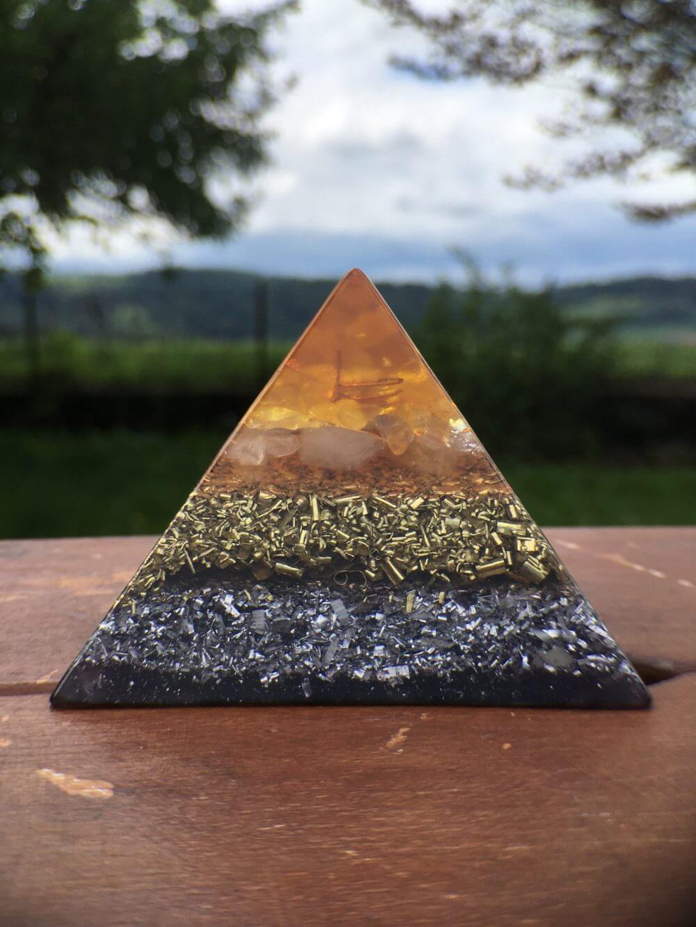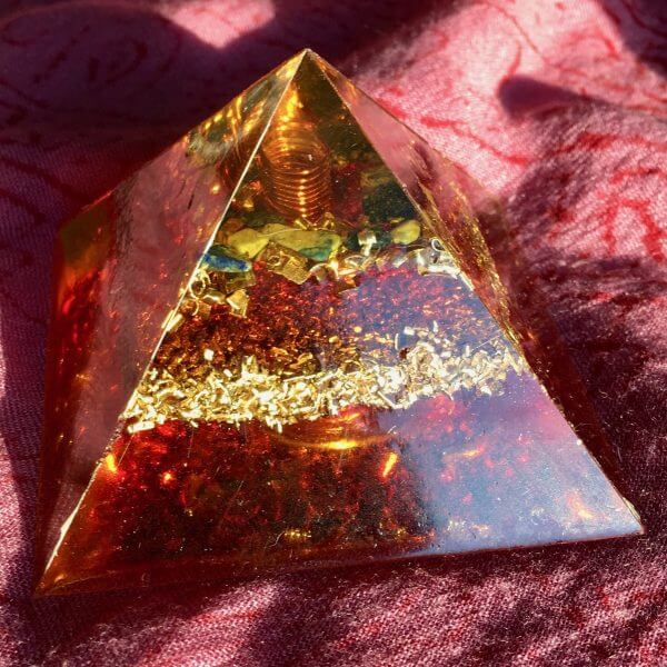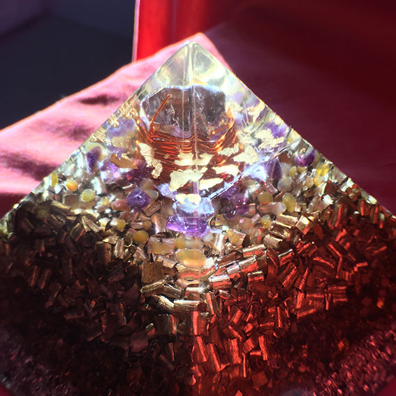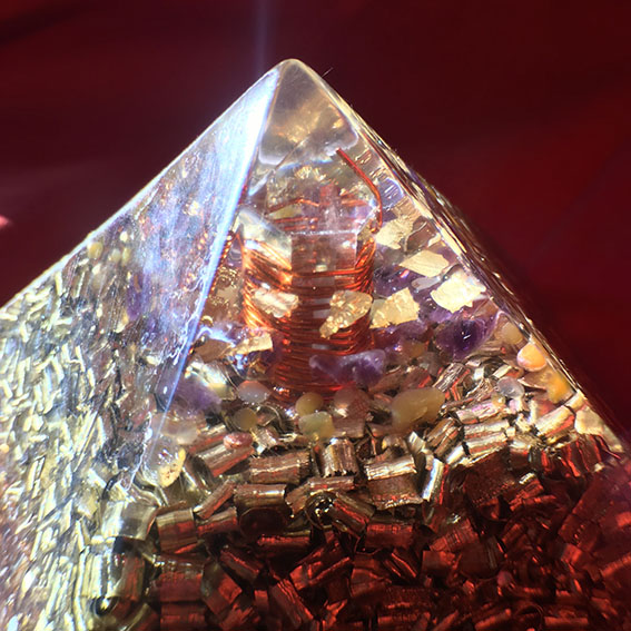 En traversant une orgonite, les ondes électromagnétiques vont se transformer et devenir positives. Grâce au pouvoir des cristaux combinés aux métaux et à la résine, l’orgonite va améliorer votre champ d’énergie.